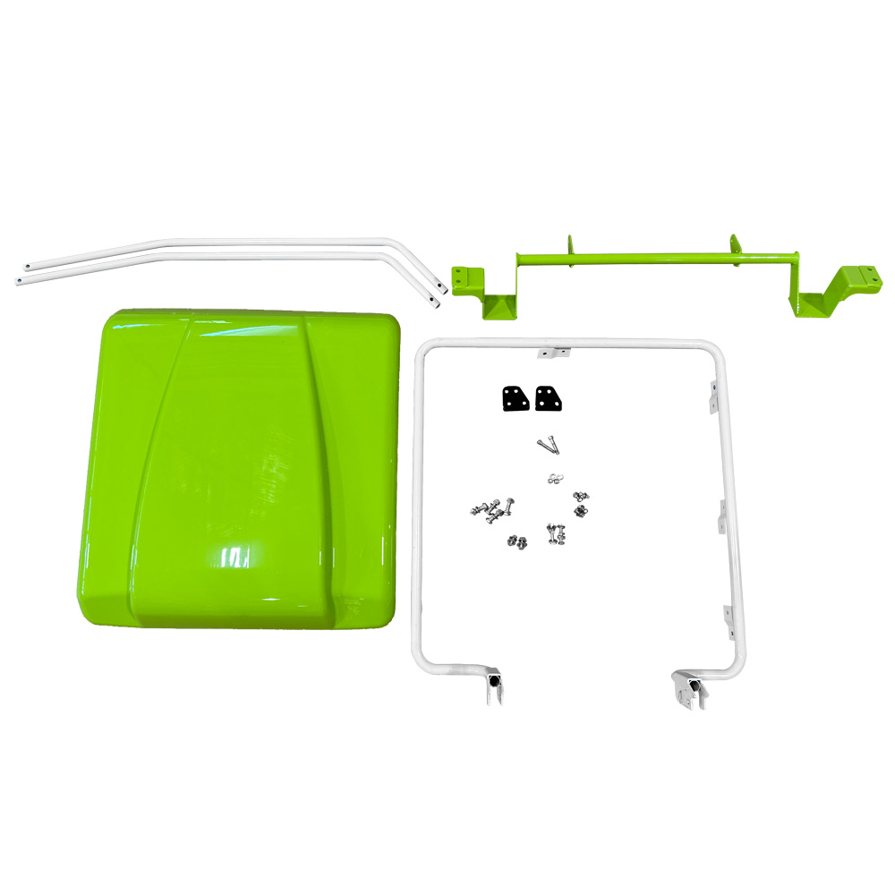 Accessoires d'origine | Arrêt automatique des lames et du ramassage lorsque le bac est plein. Relevage hydraulique du plateau et vidange hydraulique du bac. Kit mulching pour plateau de coupe de 132 cm.Kit feux avant et arrière + indicateurs de direction. | |